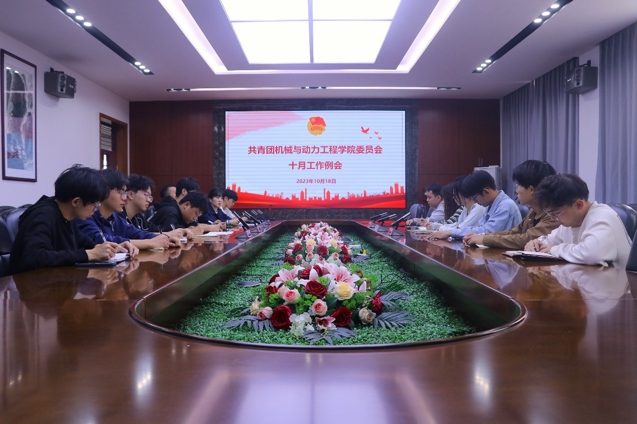 2023年10月18日下午,机械学院共青团委员会十月工作例会于院楼217会议室召开,会议由王思思主持,共青团委员会成员及各学生组织代表参加本次会议。