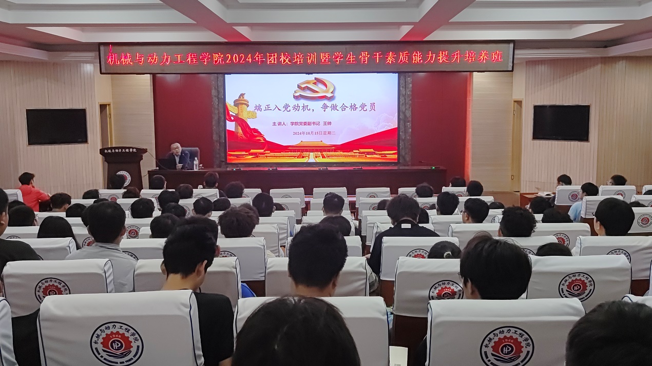 从9月24日至10月15日,我院团委于院楼205会议室开展了“2024年团校培训暨学生骨干素质能力提升培养班”。机械学院党委副书记王帅、团委书记王思思、学工办主任王瑞瑞、专职组织员刘琳、科创中心主任胡相忠,各学生组织干部、第四期“青马班”学员、24级团支部成员参加培训。