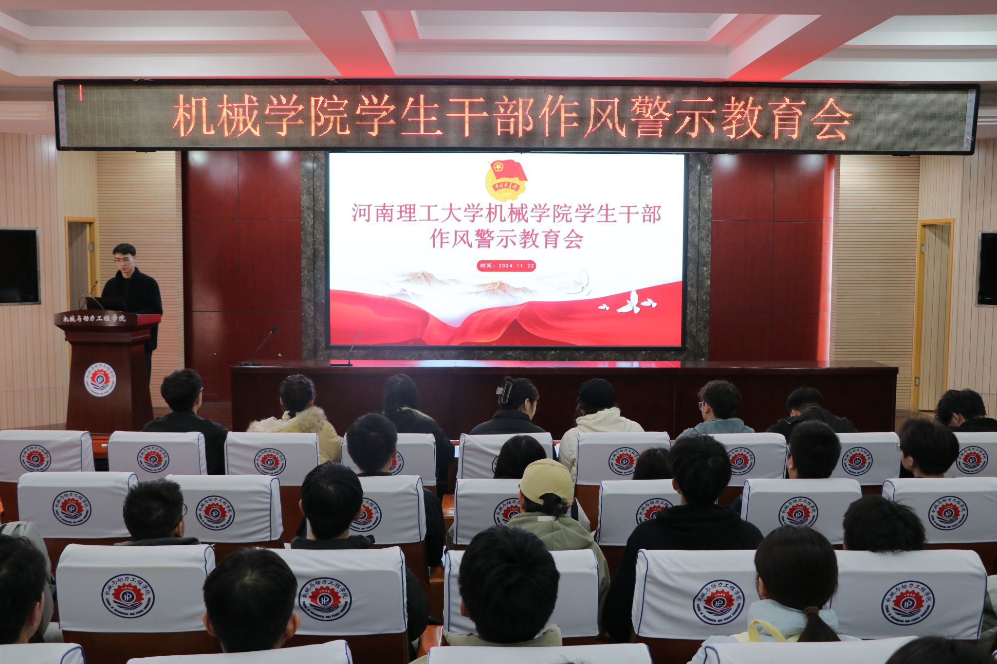 为持续推进学生组织作风建设,我院于11月22日在院楼205会议室召开了学生干部作风教育警示会。本次会议由学生会执行主席禹森鹏主持,旨在加强学生干部队伍建设,提升学生干部的服务意识和工作能力。