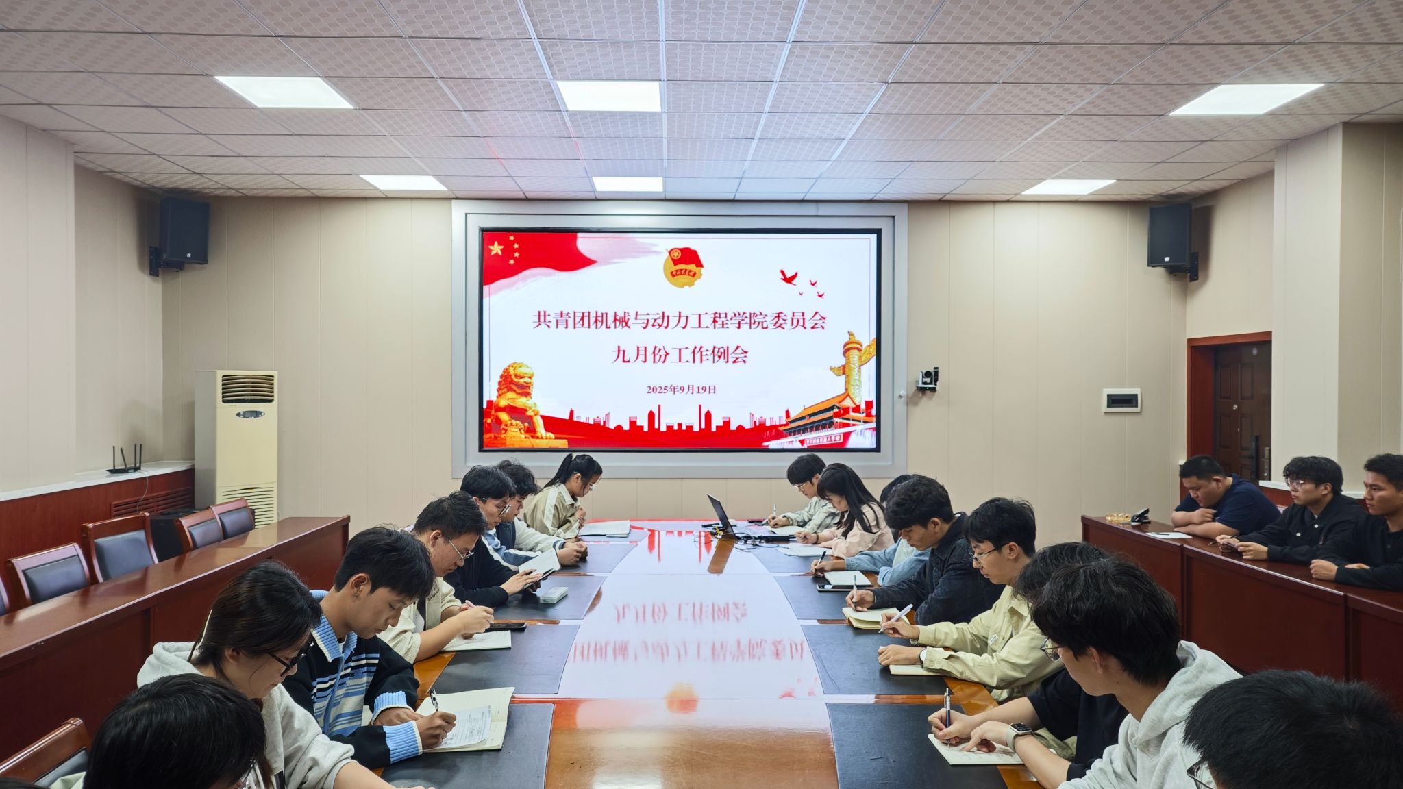 2025年9月19日下午,我院团委九月份工作例会于院楼204会议室召开,会议由院团委书记王思思主持,各学生组织负责人及主席团成员参加此次会议。