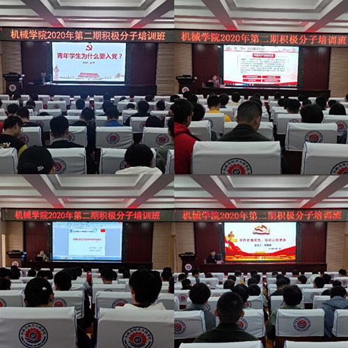 为进一步提高我院积极分子的政治思想水平和理论素养,端正入党动机,坚定理想信念。10月27日,2020年度第二期入党积极分子培训班在学院205会议室开班。党委书记聂凯、党委副书记许荣梅、专职组织员刘琳及辅导员胡相忠为学生授课,学院全体入党积极分子参加了本次培训。