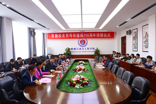 10月18日下午,我院在该院217会议室举办了“黄巍校友贺母校建校110周年捐赠仪式”。学校副校长赵俊伟、工程训练中心主任张英琦、学生工作部(处)副部(处)长孙彦、教务处副处长曹中秋,广州石玉机电设备工程有限公司总经理黄巍、财务部经理邓金华,学院党政领导及能源与动力工程专业部分师生参加了仪式。仪式由学院党委书记聂凯主持。