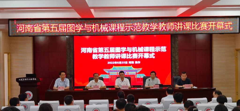 2022年6月25日至26日,河南省第五届图学与机械课程示范教学教师讲课比赛在我校举行,来自郑州大学、河南农业大学、空军工程大学航空机务士官学校、郑州轻工业大学、河南城建学院、华北水利水电大学等全省15所高校的教师参加比赛。河南理工大学副校长赵同谦、河南理工大学机械与动力工程学院院长张新民、河南理工大学机械与动力工程学院副院长焦锋、河南省工程图学学会理事长张洛明,郑州大学赵建国教授出席活动。