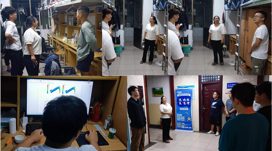 新学期伊始,为进一步落实学校工作部署,了解学生暑期生活与思想动态,进一步夯实新学期学生教育管理工作,建设更加安全、整洁、文明的宿舍文化环境,督促同学们保持宿舍整洁,排除宿舍中的存在的安全隐患,培养良好的宿舍生活习惯,8月27日,机械学院辅导员耿方带领各班长、研会成员对研究生宿舍进行了全面细致的检查。