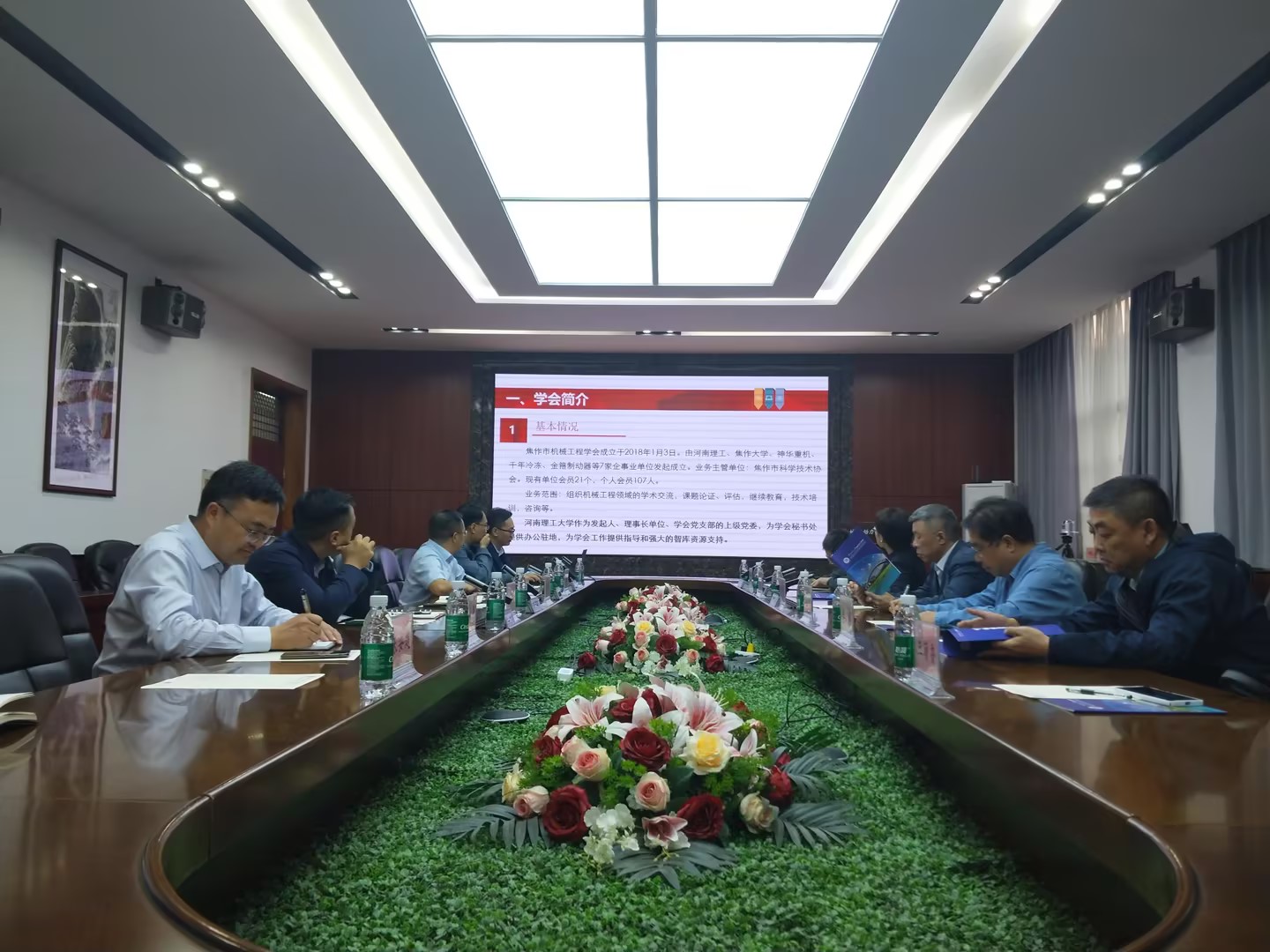 9月25日下午,焦作市政协副主席、焦作市科协主席张继东,焦作市科协党组书记张忠伟,副主席靳滨,四级调研员李峰等一行到我院调研焦作市机械工程学会工作,学院在217会议室召开工作汇报会,学院党委书记余本胜、院长明平美、党委副书记王帅、副院长兼焦作市机械工程学会秘书长焦锋、副院长张登攀参加会议。