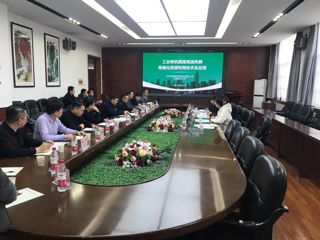 白天介绍了项目推进情况。他表示,公司主要致力于有机固废利用技术及应用领域,目前联合我院已顺利完成项目中试,计划在巩义市投资建设日处理100吨规模的工业有机固废高值化资源利用示范基地。随后,三方针对基地原料调研情况、技术工艺及环保政策等方面进行了详细讨论。