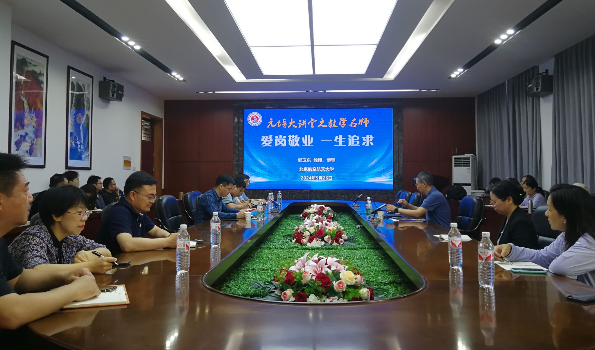 5月26日,应学院邀请,北京航空航天大学郭卫东教授做客我院“元培大讲堂之教学名师”活动,并在学院217会议室作了题为《爱岗敬业、一生追求》的专题报告。学院领导班子、系部负责人、教学团队负责人及近三年入职教师参加了活动。活动由学院副院长张安超主持。
