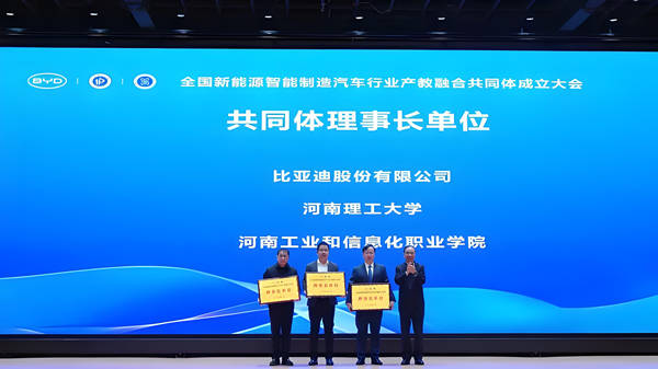 新能源智能制造汽车行业是当今世界制造业的重要发展方向,也是我国汽车产业高质量发展的必然走向。1月8日,在河南省教育厅指导下,由比亚迪股份有限公司、河南理工大学、河南工业和信息化职业学院共同牵头的全国新能源智能制造汽车行业产教融合共同体成立大会在郑州举行。我校边亚东副校长、机械学院张安超副院长、车辆系陈国强主任参加会议。