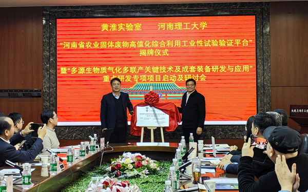 2月21日下午,黄淮实验室—河南理工大学“河南省农业固体废物高值化综合利用工业性试验验证平台”揭牌仪式暨“多源生物质气化多联产关键技术及成套装备研发与应用”重点研发专项项目启动研讨会在机械学院217会议室举行。新西兰工程院院士庞树声,河南省政府参事原特约研究员罗建中,我校副校长李振华,河南省工业和信息化厅节能与综合利用处二级调研员王复军,焦作市工业和信息化局副局长艾明,黄淮实验室常务副主任陈海文,河南省正阳种猪场有限公司董事长丰成学,河南建博环保研究院执行董事徐艳,河南永乐集团董事长庞丽娟,机械学院党委书记余本胜,院长明平美,副院长焦锋、张安超,以及项目相关教师出席了本次会议。会议由明平美院长主持。