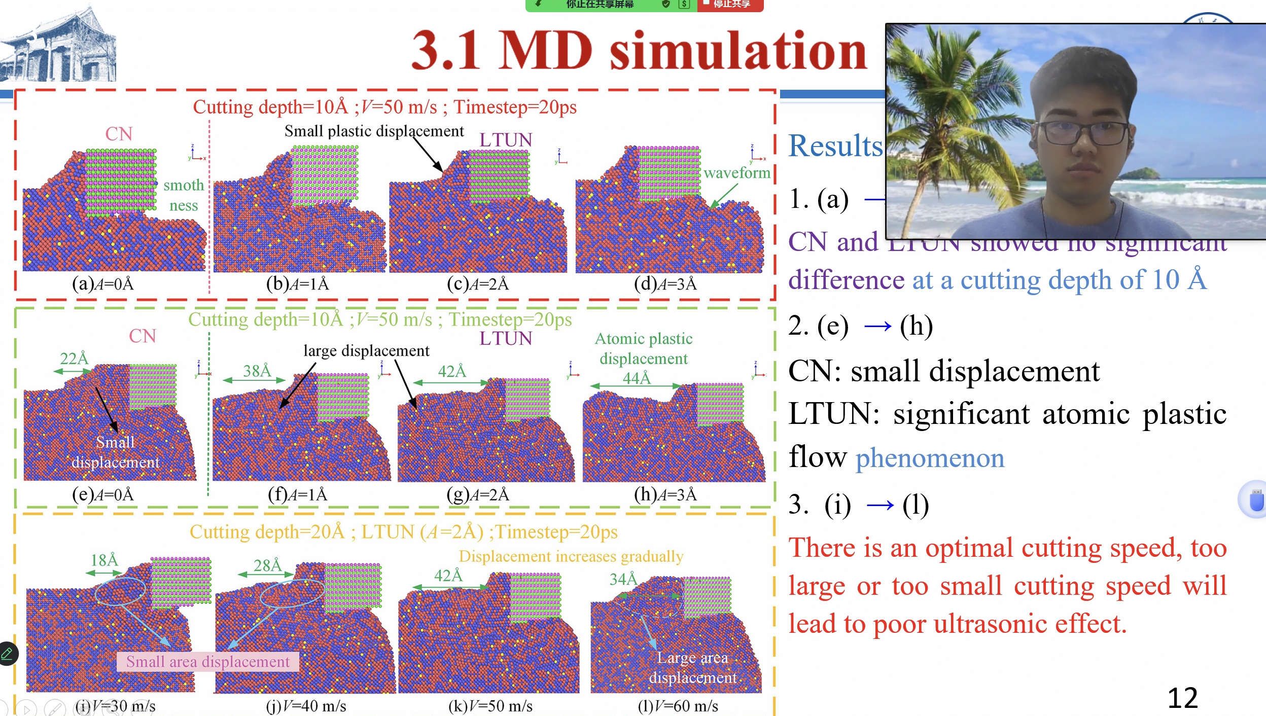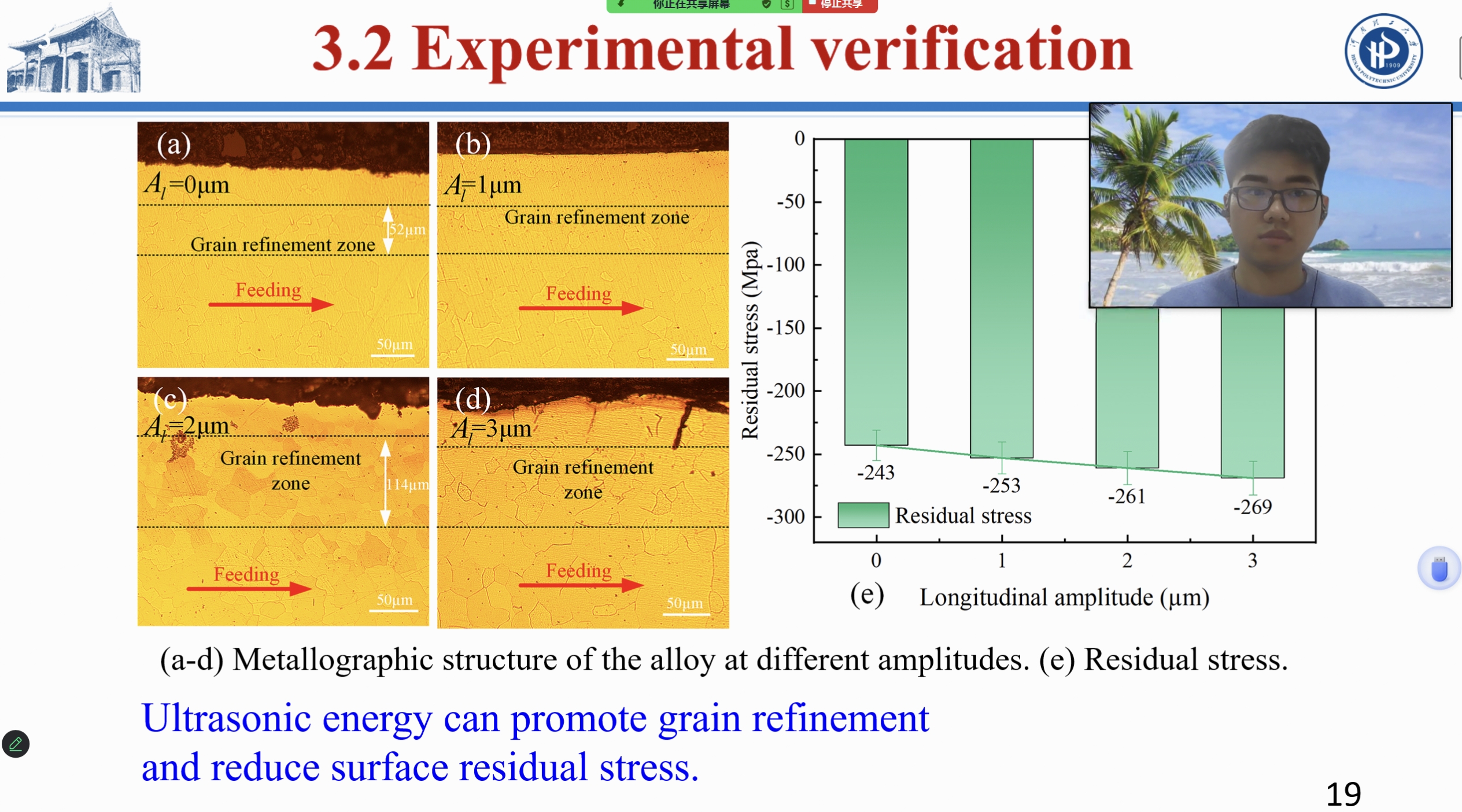 团队成员硕士生张丙洋(共同作者)参加了(视频)会议并作题为《Microfracture mechanism of longitudinal torsional ultrasonic- assisted milling of 49Fe-49Co-2V alloy: experiment and MD simulation》(Best Paper Award)的学术报告,详细介绍了超声辅助铣削技术的最新研究成果,对49Fe-49Co-2V等脆性合金微观断裂机理进行了深入探讨,对软磁合金高性能构件的工业应用具有重要意义。