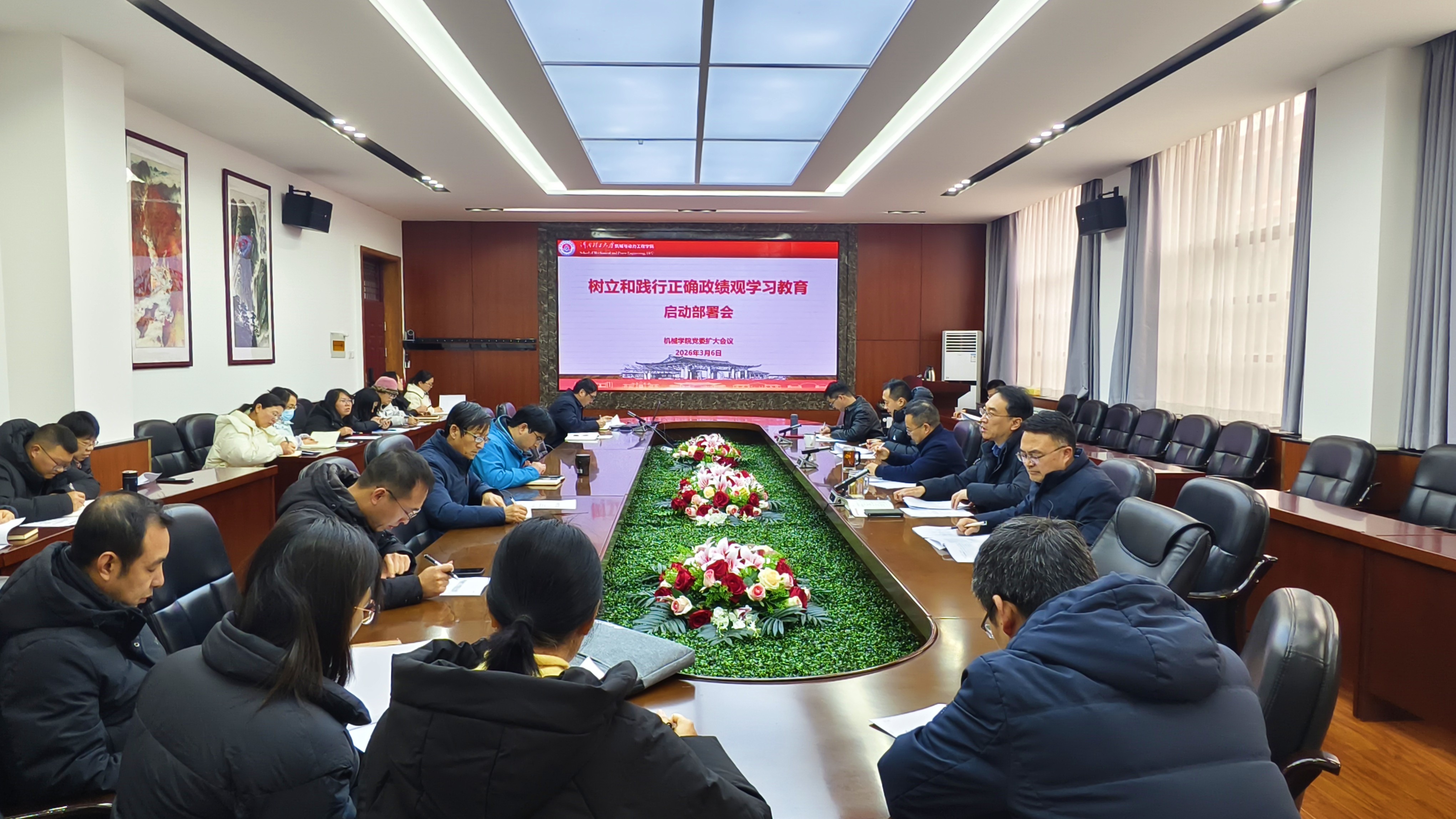 会上,焦锋传达学习了学校党委常委会扩大会议精神。会议指出,在全党开展树立和践行正确政绩观学习教育,是以习近平同志为核心的党中央作出的重大决策,是今年党的建设的重要任务。全院上下必须站在政治和全局的高度,深刻认识开展学习教育是坚定拥护“两个确立”、坚决做到“两个维护”的具体实践,是践行党的根本宗旨、夯实党的执政根基的重要举措,是巩固拓展党内集中学习教育成果、纵深推进全面从严治党的关键抓手,是以情怀使命办学治校、确保学校“十五五”开好局的现实需要。全院上下要认真落实党中央部署和省委、学校党委要求,以高度的政治自觉、思想自觉、行动自觉抓好学习教育各项工作。