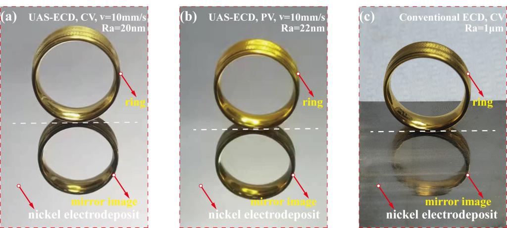 针对常规电沉积技术制备金属纳米结构材料的不足,明平美教授团队提出了一种新型电沉积技术—线阳极扫描电沉积技术(Wire Anode Scanning Electrodeposition,WAS-ECD)。该技术以超细(直径/宽度≤50μm)惰性金属丝材为阳极(线阳极),并在阴极上方极小极间间隙(≤200μm)位置往复扫描运动而实现金属电沉积。WAS-ECD技术实现了无添加剂、无脉冲电源等辅助手段下超高强度超纯纳米镍的高品质制备,制备出的纳米镍晶粒15-50nm、镍含量高达99.9997%、镀态硬度656HV、拉伸强度664MPa、断裂延伸率8.5%,兼具了高硬度、高塑性和高超纯度的优异性能。WAS-ECD技术为超高强度超纯纳米晶金属材料的制备提供了新的技术方案。