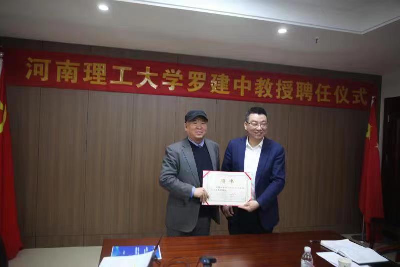 聘任仪式上,赵同谦向罗建中颁发兼职教授聘书,介绍了罗建中教授的基本情况,并代表学校对罗教授受聘我校表示热烈欢迎,希望在罗教授的指导和帮助下,我校的机械工程、能源与动力工程等学科的建设水平跃上新的台阶。罗建中教授对学校给予的信任和支持表示感谢,他动情地说,今天受聘母校兼职教授,深感荣幸,表示将尽心尽力,扎实工作,充分发挥自身优势和桥梁作用,为学校相关学科建设做出积极贡献。