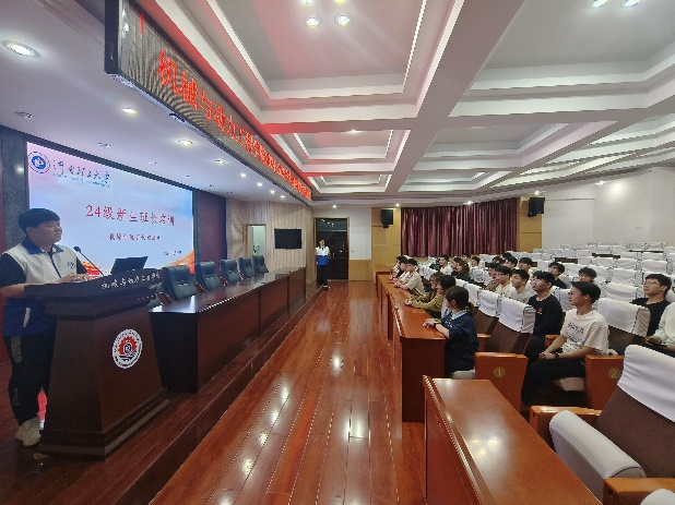 会议第三项,副主席孙博亚围绕寝室文化建设、寝室卫生管理以及规范作息等方面展开深入讲解。他表示,良好的寝室文化能够营造积极向上、团结友爱的生活氛围。同时,各寝室应建立健全卫生值日制度,确保寝室环境整洁卫生。另外,为保障同学们的学习与生活秩序,要坚决杜绝早出晚归现象,引导学生树立健康的作息观念。