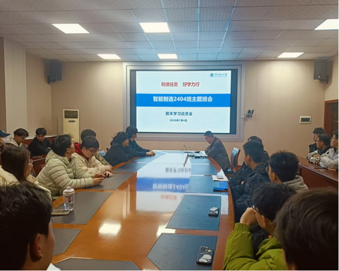 2026年1月4日晚,临近期末,为帮助同学们精准高效地复习,以及积累更多的学科竞赛经验,智能制造2404班全体同学以“明德任责,好学力行”为核心理念,于机械学院204会议室召开期末学习动员与学科竞赛经验分享主题班会。
