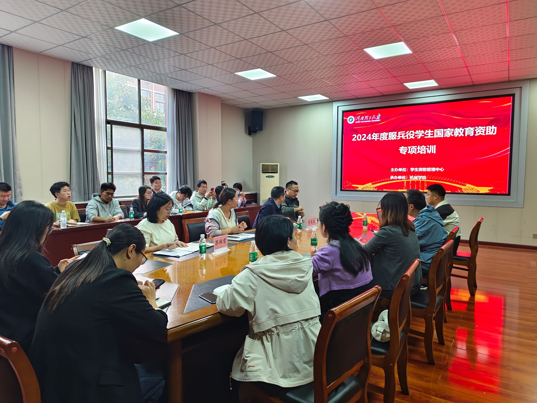 为做好我校2024年度服兵役国家教育资助信息申报,确保国家资助政策落实到位,10月8日下午,机械学院于院楼204室成功承办了2024年度服兵役学生国家教育资助专项培训会。学生处肖庆伦等相关老师以及各学院资助专员参加会议。本次培训由机械学院承办。