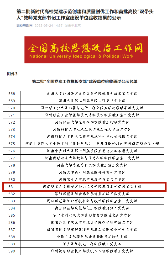 5月24日,教育部公布了第二批新时代高校党建示范创建和质量创优工作和首批高校“双带头人”教师党支部书记工作室建设单位验收结果,我院基础教学部教工党支部顺利通过验收。