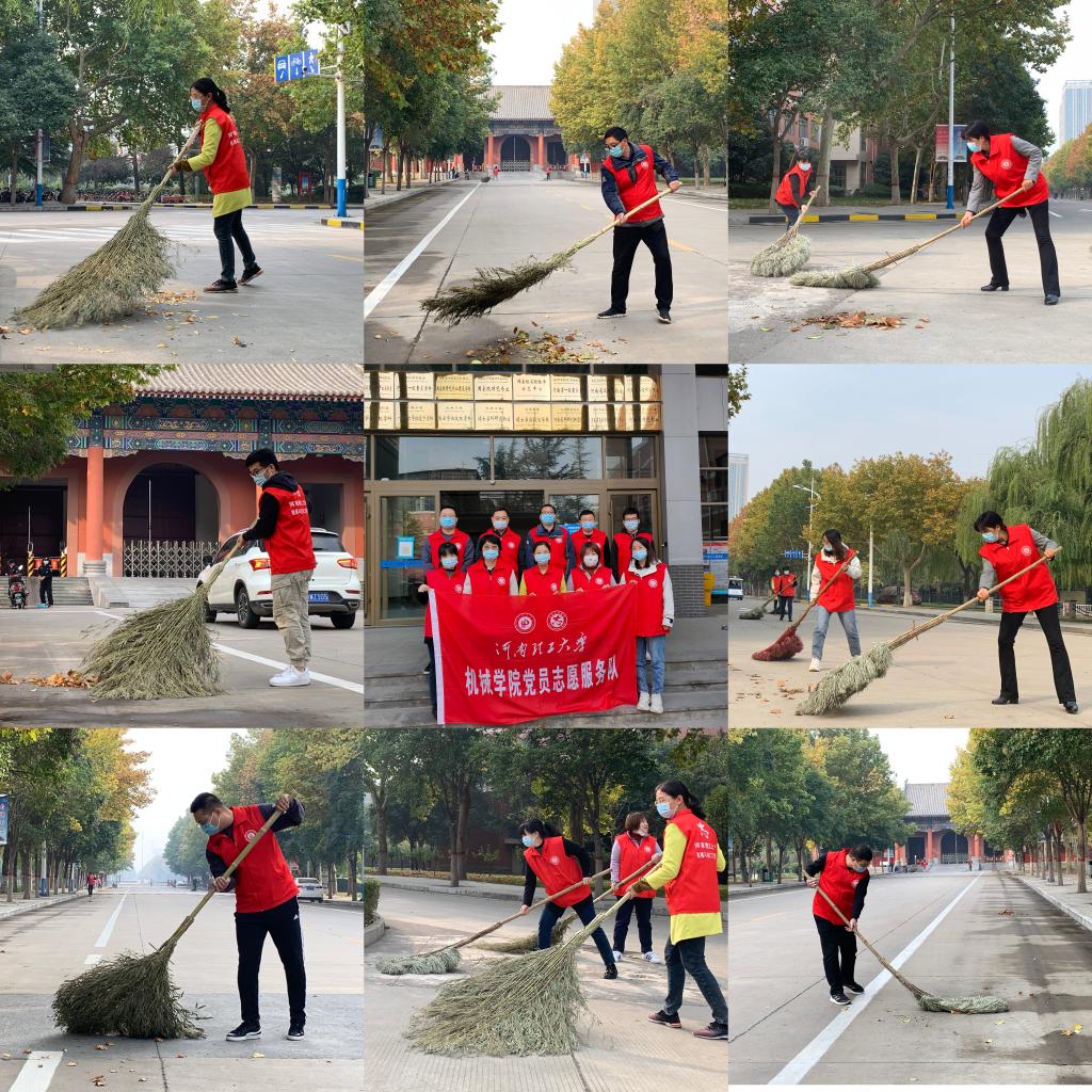 目前,焦作市疫情形势严峻复杂,校园实行封闭管理,后勤部门人手短缺,为学校环境卫生工作带来了较大影响。我院组织能入校的“机械先锋”党员同志们一起,积极参与到本次志愿服务中来。志愿者们通力合作,各显身手,分段分块清扫,有的拿着扫把清理细微处落叶,有的拿着簸箕和垃圾袋清理垃圾,有些落叶卡在卫生死角,扫帚无法扫出,志愿者就俯下身用手拾起……就这样,一片一片、一段一段的落叶被逐渐清理干净,大家打扫的校园区域旧貌换新颜。